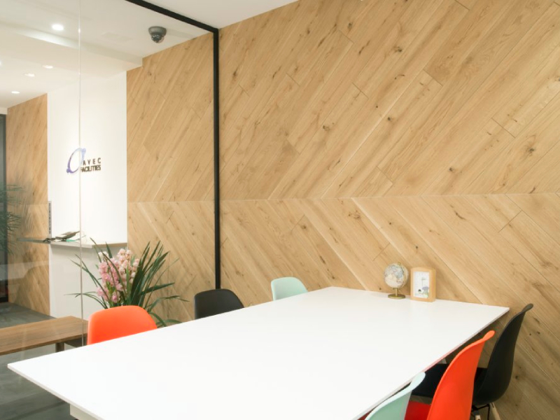 "Woodpecker Non-combustible Series" is a wall and ceiling material made by 6.2mm thickness with natural wood veneer on the surface.