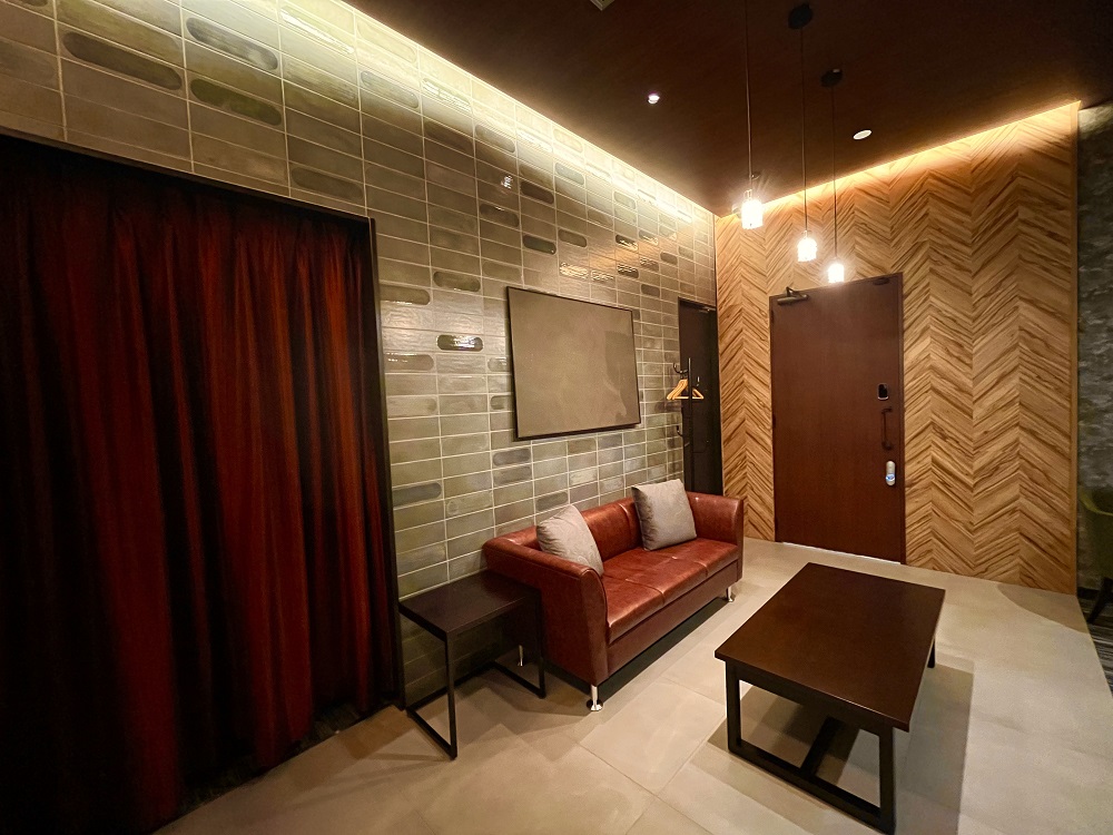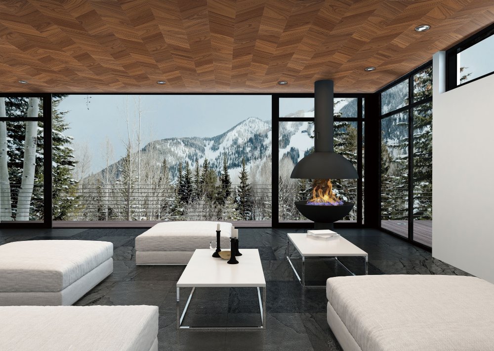 It is the non-combustible panel with a herringbone pattern that colors the space gorgeously. It can be used on the wall and ceiling.
