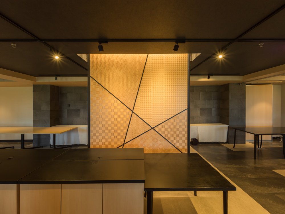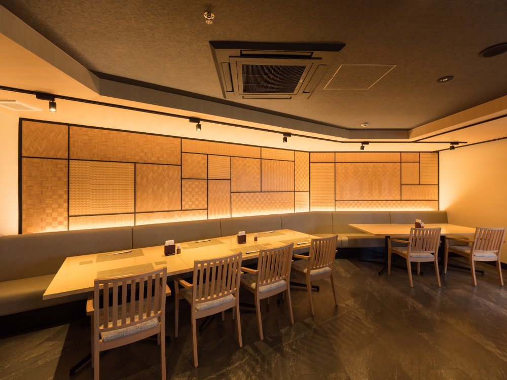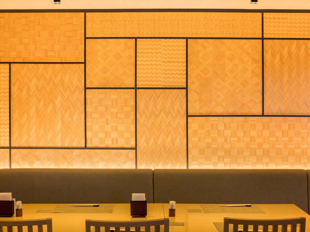 The parquet of traditional crafts is finished as a non-combustible material. It can be used on the wall and ceiling.